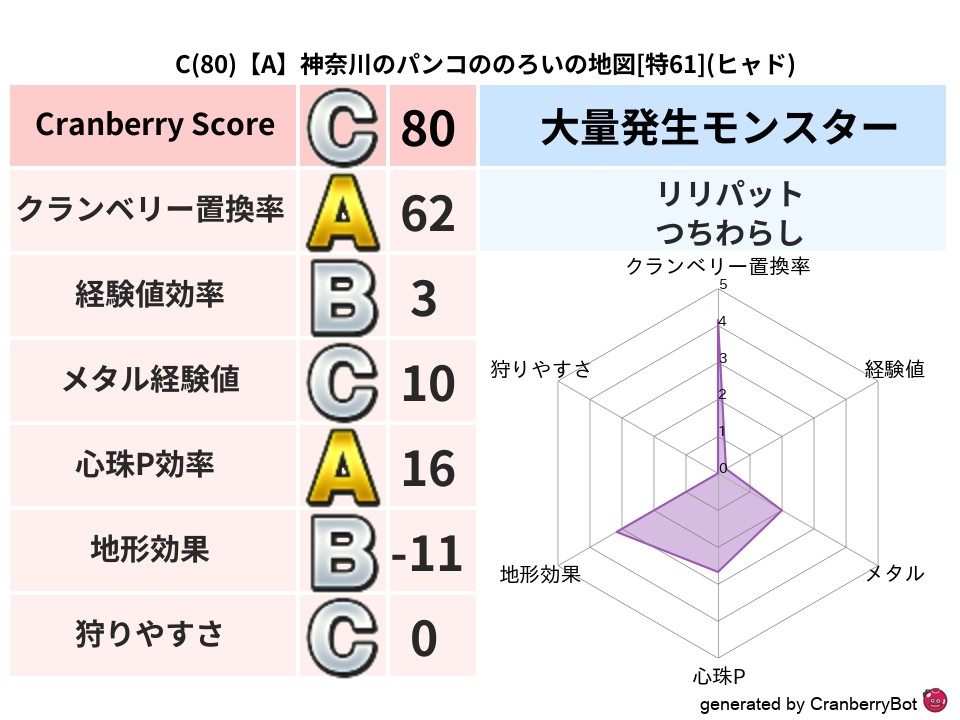 • クランベリースコア:これまで判定した地図での順位、上位100位はかなりレア✨