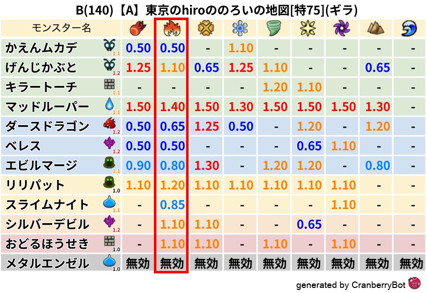 ギラ(55%) - 超耐性・弱耐性なし