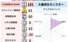 • クランベリー置換率:大量発生モンスター別の順位、最高置換率の地図は人気が高い
