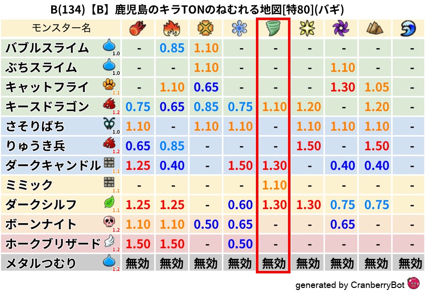 • 最高系統出現率:一番出現率の高いモンスターの系統、こころドロップ率アップの参考に!