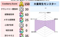• クランベリー置換率:大量発生モンスター別の順位、最高置換率の地図は人気が高い