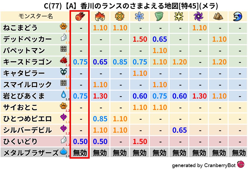 • 最高系統出現率:一番出現率の高いモンスターの系統、こころドロップ率アップの参考に!