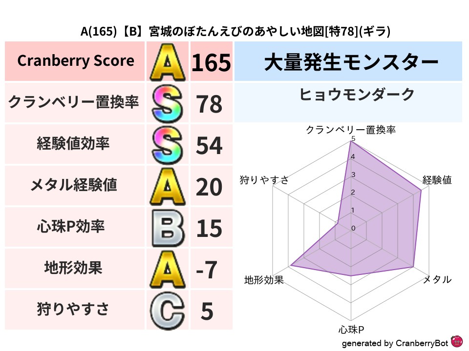 • クランベリースコア:これまで判定した地図での順位、上位100位はかなりレア✨