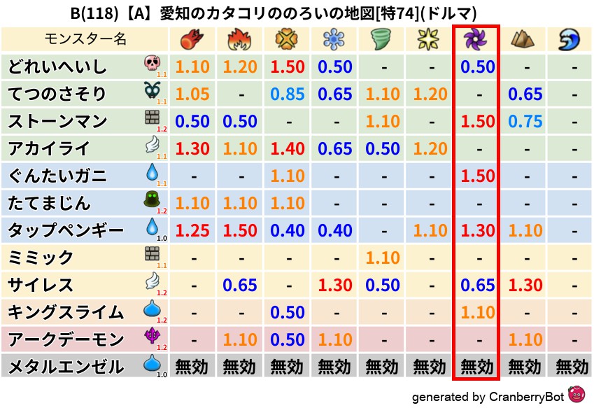 ドルマ(49%) - 超耐性・弱耐性なし