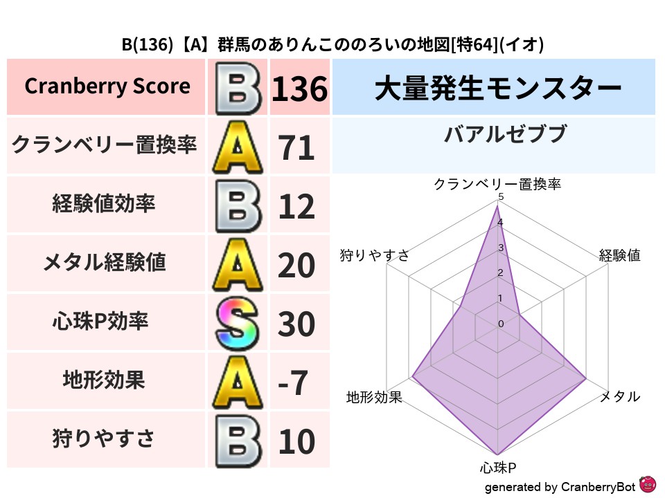 - クランベリースコア:133
