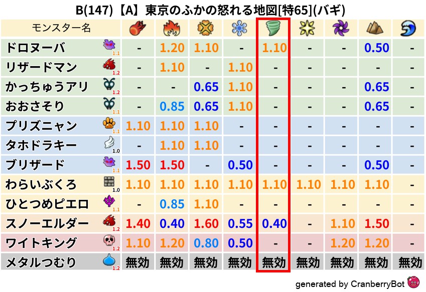 - 超耐性・弱耐性なし:メラ,デイン,ドルマ