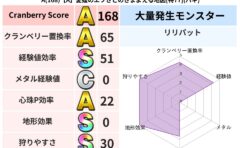 • クランベリー置換率:大量発生モンスター別の順位、最高置換率の地図は人気が高い