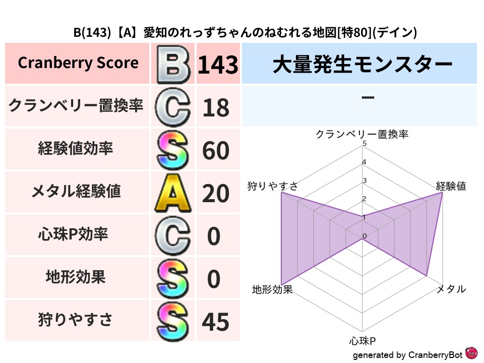 • クランベリー置換率:大量発生モンスター別の順位、最高置換率の地図は人気が高い