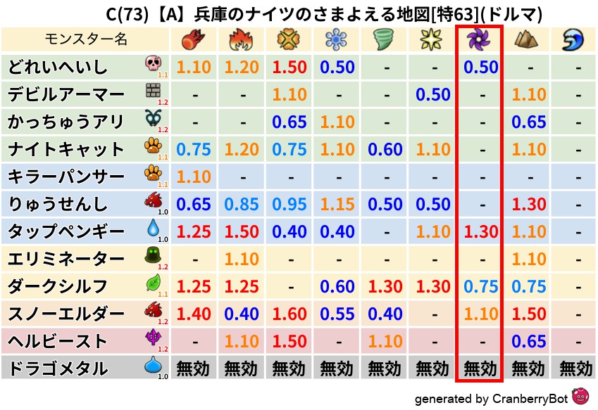 • 最高系統出現率:一番出現率の高いモンスターの系統、こころドロップ率アップの参考に!