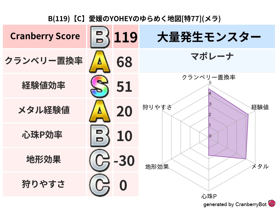 • クランベリースコア:これまで判定した地図での順位、上位100位はかなりレア✨