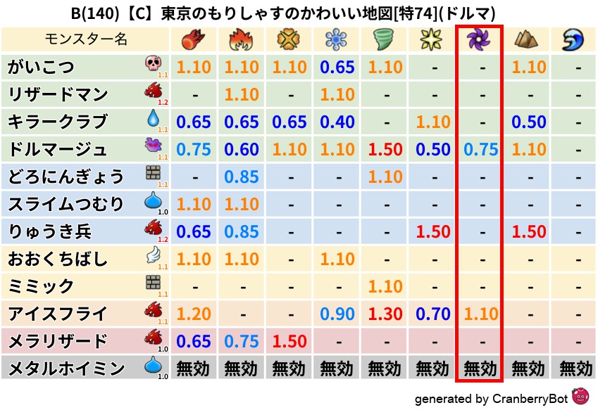 ドルマ(0%) - 超耐性・弱耐性なし