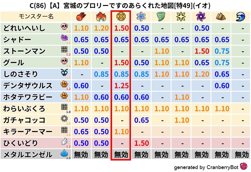 • 最高系統出現率:一番出現率の高いモンスターの系統、こころドロップ率アップの参考に!