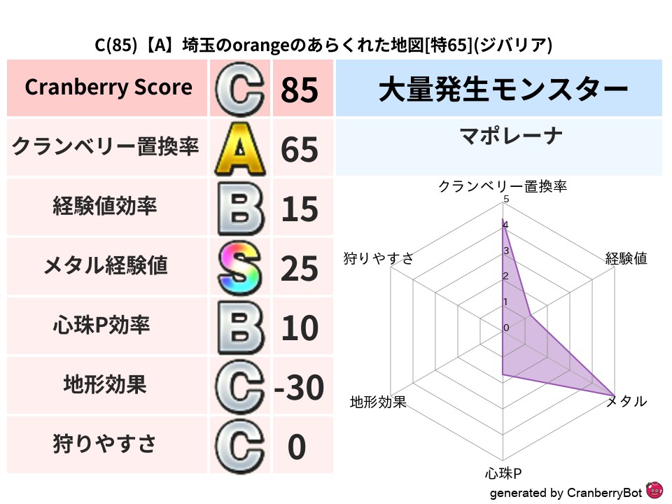 - クランベリースコア:109