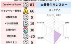 • クランベリー置換率:大量発生モンスター別の順位、最高置換率の地図は人気が高い