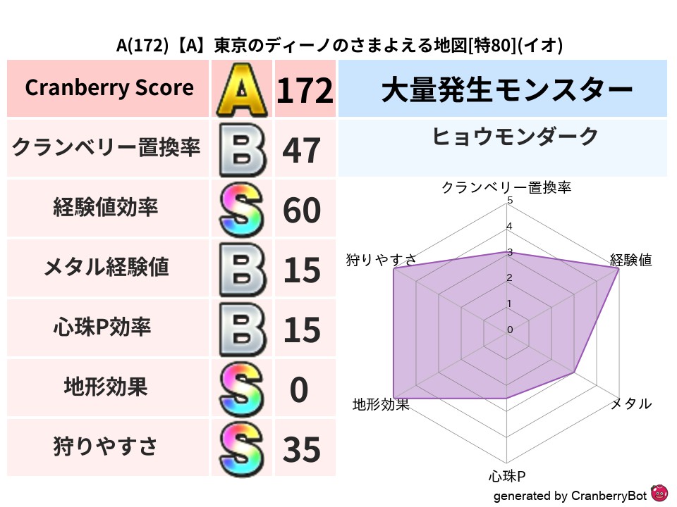 • クランベリースコア:これまで判定した地図での順位、上位100位はかなりレア✨