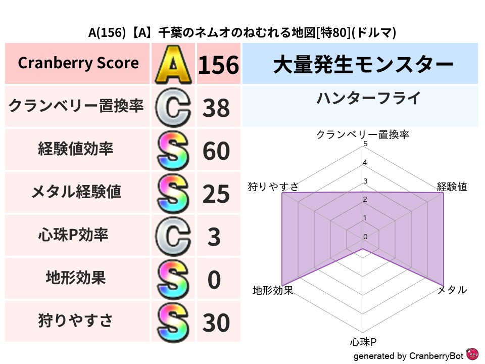 • クランベリースコア:これまで判定した地図での順位、上位100位はかなりレア✨