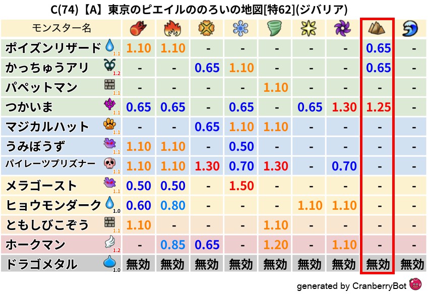 • 最高系統出現率:一番出現率の高いモンスターの系統、こころドロップ率アップの参考に!