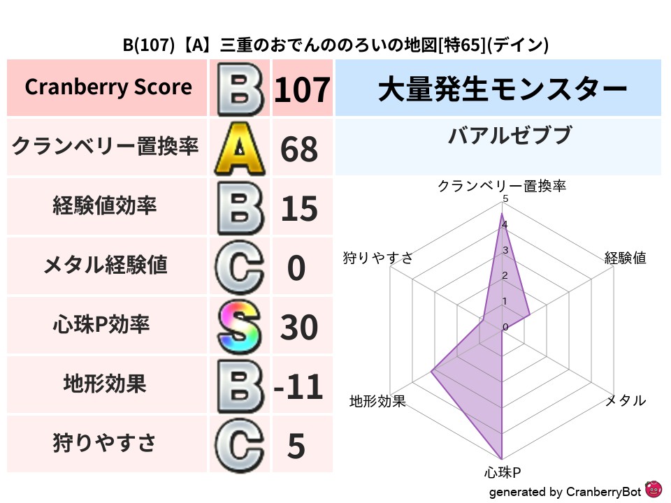 - クランベリースコア:122