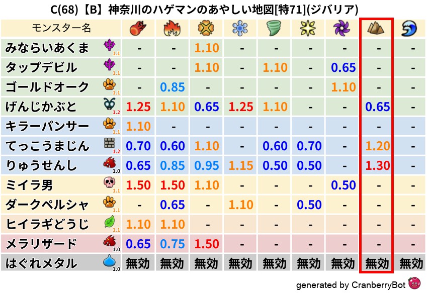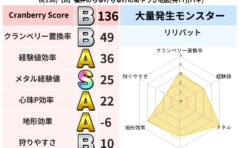• クランベリー置換率:大量発生モンスター別の順位、最高置換率の地図は人気が高い