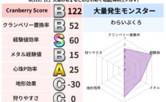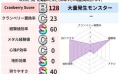 • クランベリー置換率:大量発生モンスター別の順位、最高置換率の地図は人気が高い