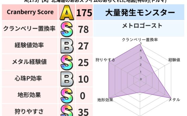 クランベリーボット判定結果の詳細クランベリースコア126クランベリー置換率76%大量発生モンスタークリスタルハンド超耐性デイン(83%)系統狩りゾンビ系46%こころ道 完全一致モンスターシャドーニンジャ(波道Lv30)ストーンマンゴッドハン...