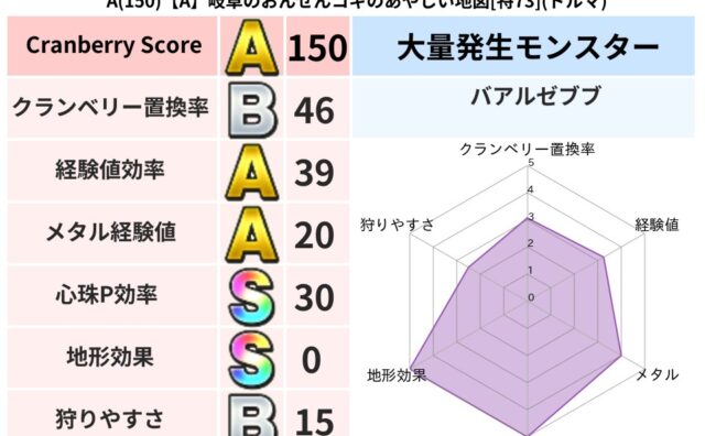 クランベリーボット判定結果の詳細クランベリースコア116クランベリー置換率61%大量発生モンスターりゅうせんし超耐性ヒャド(6%)こころ道 完全一致モンスターキャットフライニンジャ(共通Lv1)みならいあくまニンジャ(風道Lv5)かっちゅう...