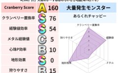 クランベリーボット判定結果の詳細クランベリースコア124クランベリー置換率63%大量発生モンスターバアルゼブブ超耐性ギラ(69%)こころ道 完全一致モンスターてつのさそりゴッドハンド(守護道Lv5)大魔道士(魔力道Lv5)キースドラゴン大魔...