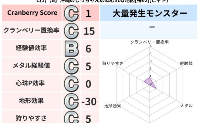 クランベリーボット判定結果の詳細クランベリースコア:140クランベリー置換率:65%大量発生モンスター:わらいぶくろデイン超耐性(38%)超耐性・弱耐性なし:イオこころ道 完全一致モンスターデビルアーマー大神官(舞道Lv5)しりょうのきし大...