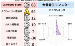 クランベリーボット判定結果の詳細クランベリースコア78クランベリー置換率60%大量発生モンスターマポレーナ超耐性ヒャド(81%)系統狩り悪魔系43%こころ道 完全一致モンスターみならいあくまニンジャ(風道Lv5)ナイトキャット守り人(まもり...