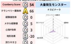 クランベリーボット判定結果の詳細クランベリースコア74クランベリー置換率64%大量発生モンスターつむりんママ超耐性ヒャド(80%)こころ道 完全一致モンスターがいこつ魔剣士(共通Lv1)ストーンマンゴッドハンド(守護道Lv5)だいまどうゴッ...