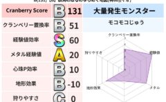 クランベリーボット判定結果の詳細クランベリースコア:104クランベリー置換率:63%大量発生モンスター:クリスタルハンドメラ超耐性(80%)こころ道 完全一致モンスターキャットフライ: ニンジャ(共通Lv1)さまようよろい: ゴッドハンド(...