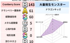 クランベリーボット判定結果の詳細クランベリースコア129クランベリー置換率79%大量発生モンスターバアルゼブブ超耐性バギ(0%)系統狩り悪魔系49%こころ道 完全一致モンスターキメラ大魔道士(共通Lv1)かっちゅうアリ魔人(共通Lv1)キー...
