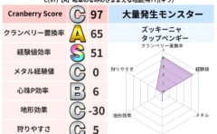 クランベリーボット判定結果の詳細クランベリースコア:129クランベリー置換率:62%大量発生モンスター:バアルゼブブドルマ超耐性(10%)超耐性・弱耐性なし:デインこころ道 完全一致モンスターねこまどう: ニンジャ(風道Lv5)どくどくゾン...