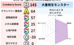 クランベリーボット判定結果の詳細クランベリースコア78クランベリー置換率63%大量発生モンスターバアルゼブブ超耐性ジバリア(74%)こころ道 完全一致モンスターおおさそりゴッドハンド(武道Lv5)ドラゴン(共通Lv1)キースドラゴン大魔道士...