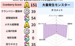 クランベリーボット判定結果の詳細クランベリースコア98クランベリー置換率65%大量発生モンスターじごくのもんばん超耐性メラ(1%)こころ道 完全一致モンスターベロニャーゴ大魔道士(理力道Lv5)しりょうのきし大神官(舞道Lv5)キースドラゴ...