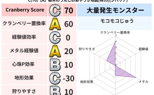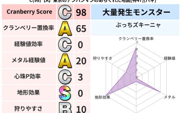クランベリーボット判定結果の詳細クランベリースコア98クランベリー置換率65%大量発生モンスターぶっちズキーニャ超耐性バギ(0%)こころ道 完全一致モンスターブラウニー守り人(共通Lv1)フロストギズモ魔剣士(魔道Lv5)ダースドラゴン天地...