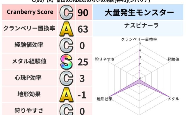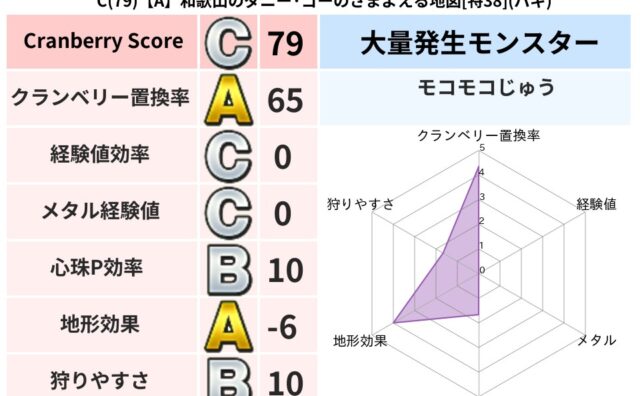 クランベリーボット判定結果の詳細クランベリースコア79クランベリー置換率65%大量発生モンスターモコモコじゅう超耐性バギ(5%)系統狩りけもの系41%こころ道 完全一致モンスターねこまどうニンジャ(風道Lv5)キースドラゴン大魔道士(理力道...