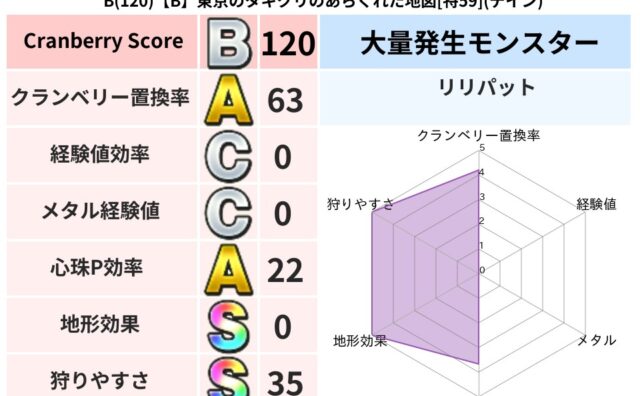 クランベリーボット判定結果の詳細クランベリースコア61クランベリー置換率66%大量発生モンスターつむりんママ超耐性ジバリア(83%)こころ道 完全一致モンスターヘルボックル魔剣士(魔道Lv30)おおさそりゴッドハンド(武道Lv5)ドラゴン(...