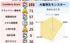 クランベリーボット判定結果の詳細クランベリースコア:132クランベリー置換率:75%大量発生モンスター:タップペンギーバギ超耐性(0%)こころ道 完全一致モンスターヒートギズモ守り人(ささえ道Lv5)かっちゅうアリ魔人(共通Lv1)マミー魔...