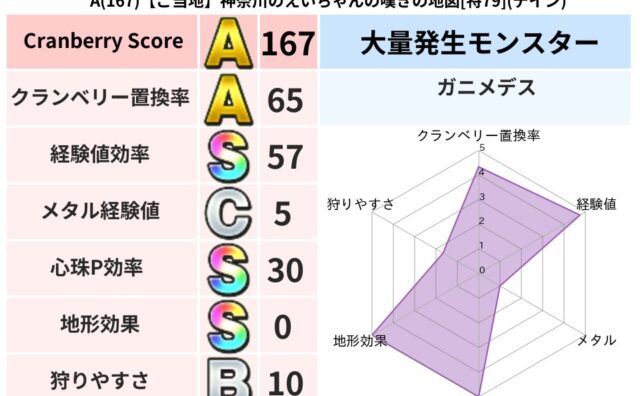 クランベリーボット判定結果の詳細クランベリースコア97クランベリー置換率62%大量発生モンスターガニメデス超耐性ジバリア(76%)超耐性・弱耐性なしバギデインこころ道 完全一致モンスターくさった死体ゴッドハンド(守護道Lv5)大魔道士(魔力...