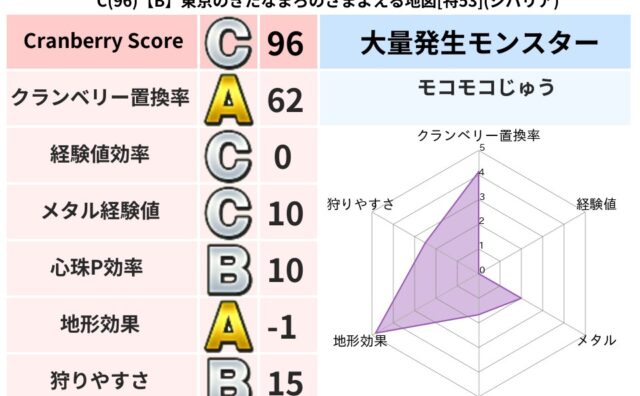 クランベリーボット判定結果の詳細クランベリースコア73クランベリー置換率63%大量発生モンスタータホドラキー超耐性ジバリア(70%)こころ道 完全一致モンスタードロヌーバニンジャ(波道Lv5)ギズモ天地雷鳴士(共通Lv1)かっちゅうアリ魔人...