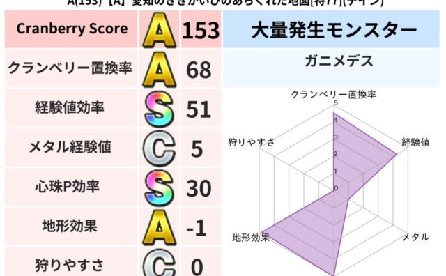 クランベリーボット判定結果の詳細クランベリースコア87クランベリー置換率61%大量発生モンスター岩とびあくま超耐性ギラ(69%)こころ道 完全一致モンスターばくだん岩大神官(舞道Lv5)キースドラゴン大魔道士(理力道Lv5)マミー魔剣士(魔...