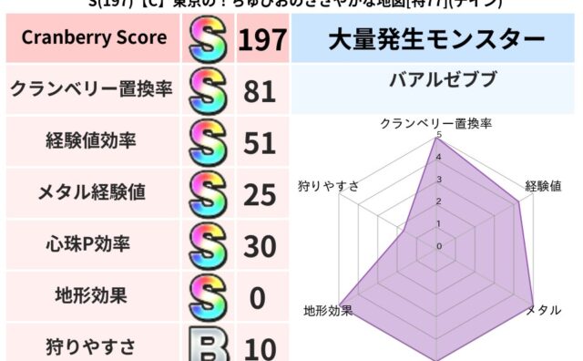 クランベリーボット判定結果の詳細クランベリースコア147クランベリー置換率38%大量発生モンスタードラキー超耐性デイン(0%)系統狩り鳥系51%こころ道 完全一致モンスタードラキー大魔道士(共通Lv1)ストーンマンゴッドハンド(守護道Lv5...