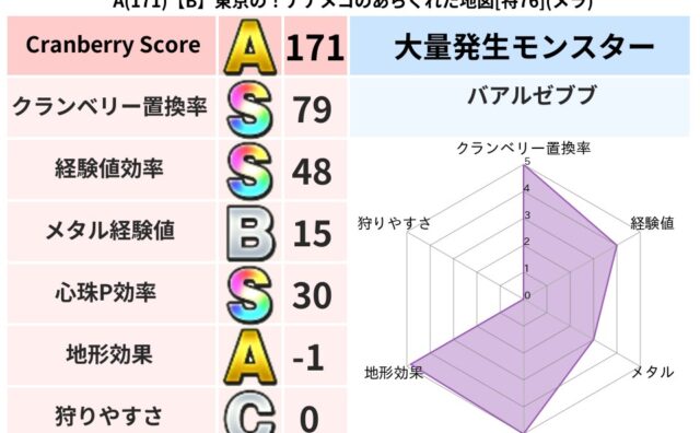 クランベリーボット判定結果の詳細クランベリースコア96クランベリー置換率79%大量発生モンスターリリパット超耐性ヒャド(47%)こころ道 完全一致モンスターデビルアーマー大神官(舞道Lv5)フロストギズモ魔剣士(魔道Lv5)どろにんぎょう守...