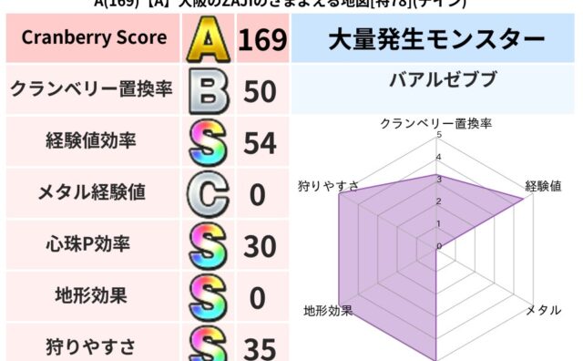 クランベリーボット判定結果の詳細クランベリースコア120クランベリー置換率82%大量発生モンスターさそりばち超耐性イオ(44%)系統狩り虫系41%こころ道 完全一致モンスターデビルアーマー大神官(舞道Lv5)キースドラゴン大魔道士(理力道L...