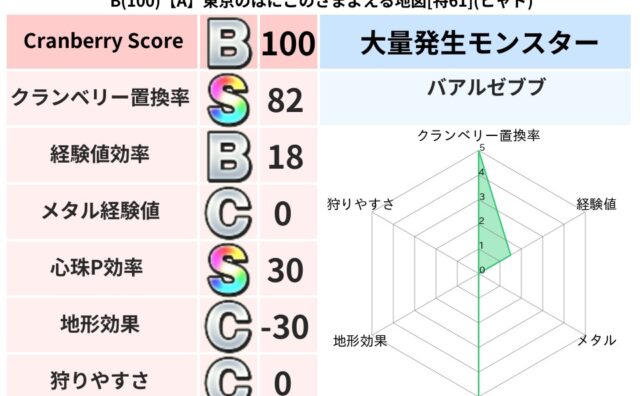 クランベリーボット判定結果の詳細クランベリースコア103クランベリー置換率80%大量発生モンスターリリパット超耐性メラ(56%)超耐性・弱耐性なしドルマこころ道 完全一致モンスターみならいあくまニンジャ(風道Lv5)プリズニャンニンジャ(共...