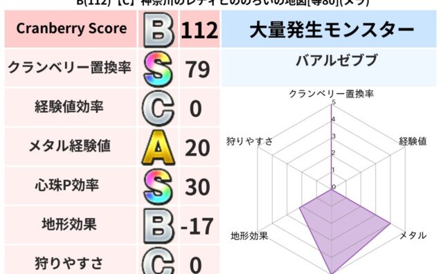 クランベリーボット判定結果の詳細クランベリースコア112クランベリー置換率79%大量発生モンスターバアルゼブブ超耐性メラ(14%)こころ道 完全一致モンスターキースドラゴン大魔道士(理力道Lv5)びっくりサタン大神官(共通Lv1)セキバーン...