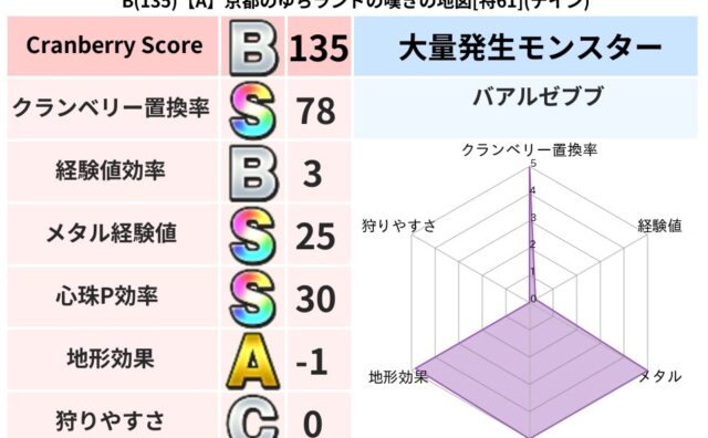 クランベリーボット判定結果の詳細クランベリースコア:134クランベリー置換率:77%大量発生モンスター:リリパット,バアルゼブブデイン超耐性(48%)超耐性・弱耐性なし:バギこころ道 完全一致モンスターヘルボックル魔剣士(魔道Lv30)スト...