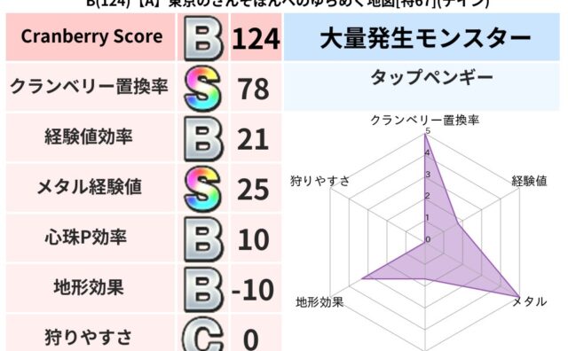 クランベリーボット判定結果の詳細クランベリースコア126クランベリー置換率78%大量発生モンスターナスビナーラ超耐性デイン(0%)こころ道 完全一致モンスターキメラ大魔道士(共通Lv1)ストーンマンゴッドハンド(守護道Lv5)プリズニャンニ...