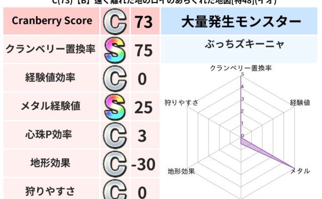 クランベリーボット判定結果の詳細クランベリースコア:80クランベリー置換率:80%大量発生モンスター:つむりんママバギ超耐性(78%)こころ道 完全一致モンスターキースドラゴン大魔導士(理力道Lv5)ジェリーマン魔剣士(魔道Lv5)ひとくい...